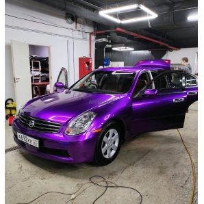 ✔️ Винил фиолетовый глянцевый металлик (перламутр) - универсальная пленка: подойдет для наружного использования, для оклейки бытовых поверхностей, а также для оклейки деталей кузова и салона автомобиля; чаще всего клеится "на сухую". Перед оклейкой поверхность необходимо обезжирить и при возможности произвести полировку. Данная пленка подойдет как для оклейки кузовных элементов из металла и пластика, так и для любых других поверхностей без текстуры. Срок службы такой пленки на поверхности зависит от многих факторов: качества нанесения материала, места применения, геометрии элемента, условий эксплуатации и мойки, иных факторов итд. При условии соблюдения основных правил и рекомендаций нанесения и эксплуатации пленка служит до 5 лет.
